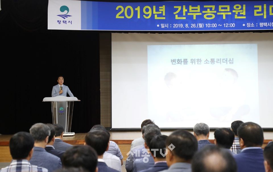 평택시(시장 정장선)가 26일 ‘간부공무원 리더십 특강’교육을 실시했다.