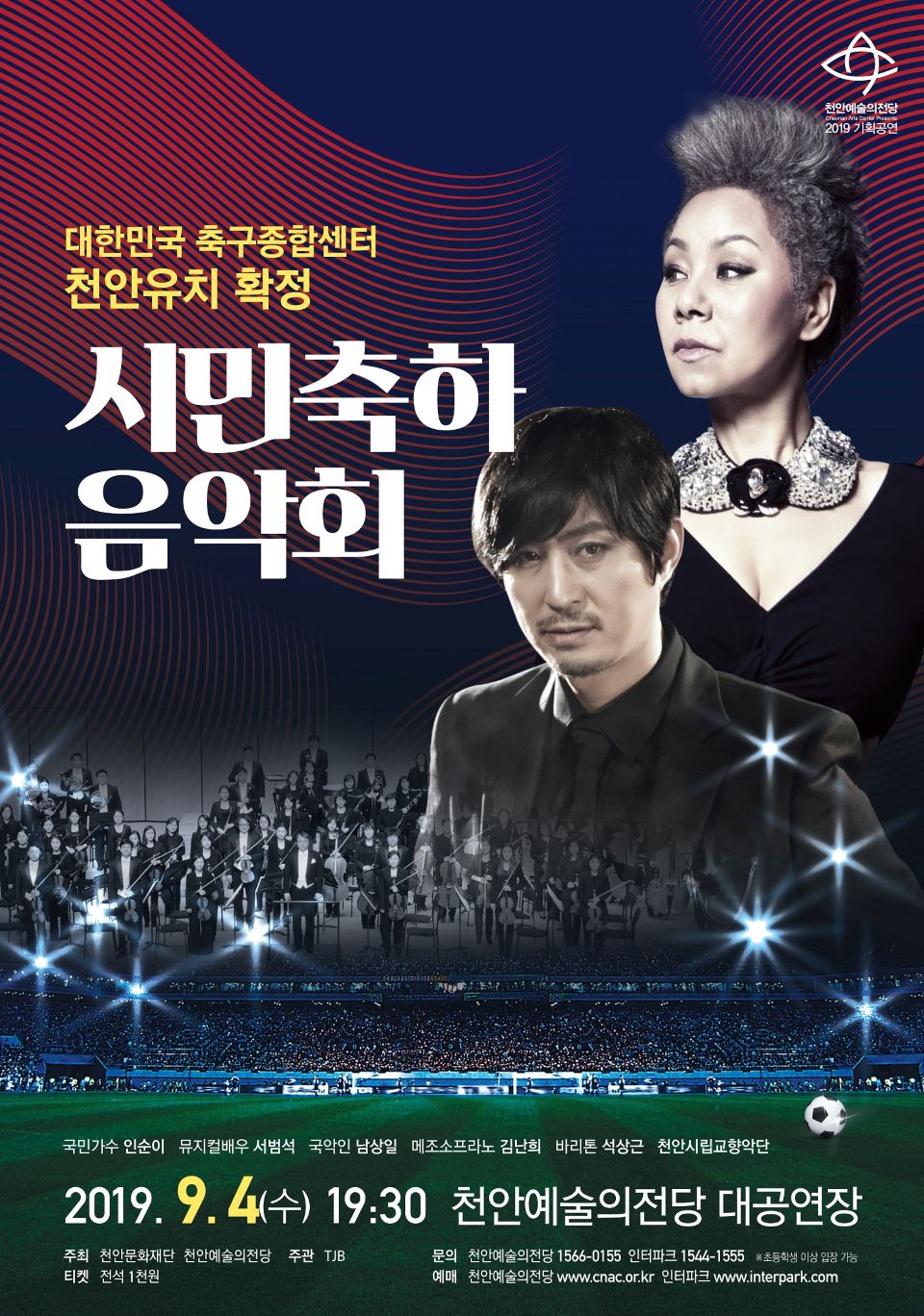 임전배 공연기획팀장은 “한국축구 100년사에 한 획을 긋는 기념비적 역사인 대한민국 축구종합센터 천안유치를 함께 기뻐하기 위해 시민축하음악회를 준비했다”며 “많은 시민분들이 오셔서 축하는 물론 천안시 발전과 성공적인 사업 추진을 함께 기원해 주시길 바란다”고 말했다.