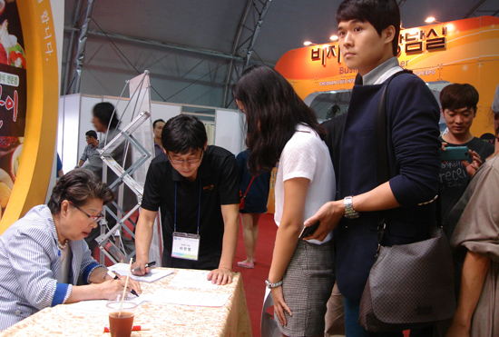 천안엑스포 홍보대사인 엄 씨는 이날 오후 엑스포장 내 식품기업관 안에서 사인과 기념사진을 텅해 엑스포를 격려했다.