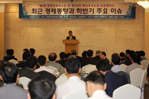 대전상공회의소(회장 손종현)는 12일 오전 7시 유성호텔 8층 스타볼룸에서 ‘제8차 충청권경제포럼’ 및 ‘제159차 대전경제포럼 조찬세미나’를 동시 개최하고 ‘최근 경제동향과 하반기 주요 이슈’를 주제로 특강을 실시했다.
