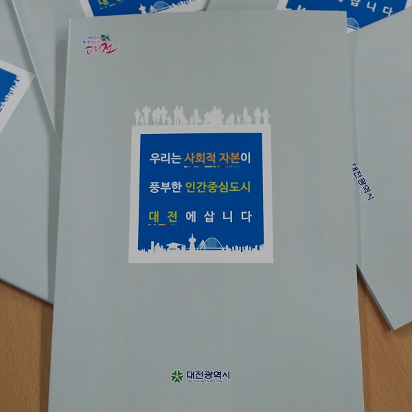 이번에 새롭게 발간된 책자는 나눔과 섬김의 복지만두레, 대전형 좋은마을 만들기 등 총 5개의 사회적자본 대표시책과 사회적자본의 핵심가치에 기반(①신뢰 ②배려 ③참여 ④소통 ⑤협력 ⑥나눔)한 37개 세부시책을 담고 있다.
