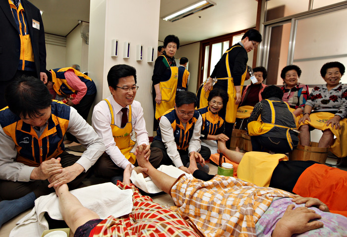 ‘노노(老老)케어 건강관리 서비스’는 노인이 노인을 보살핀다는 의미의 노인건강관리 프로그램으로 노인일자리 사업과 연계해 일자리 참여 어르신 17명과 발치유사 자격증 소유자 15명 등 총 32명이 활동 중이다.