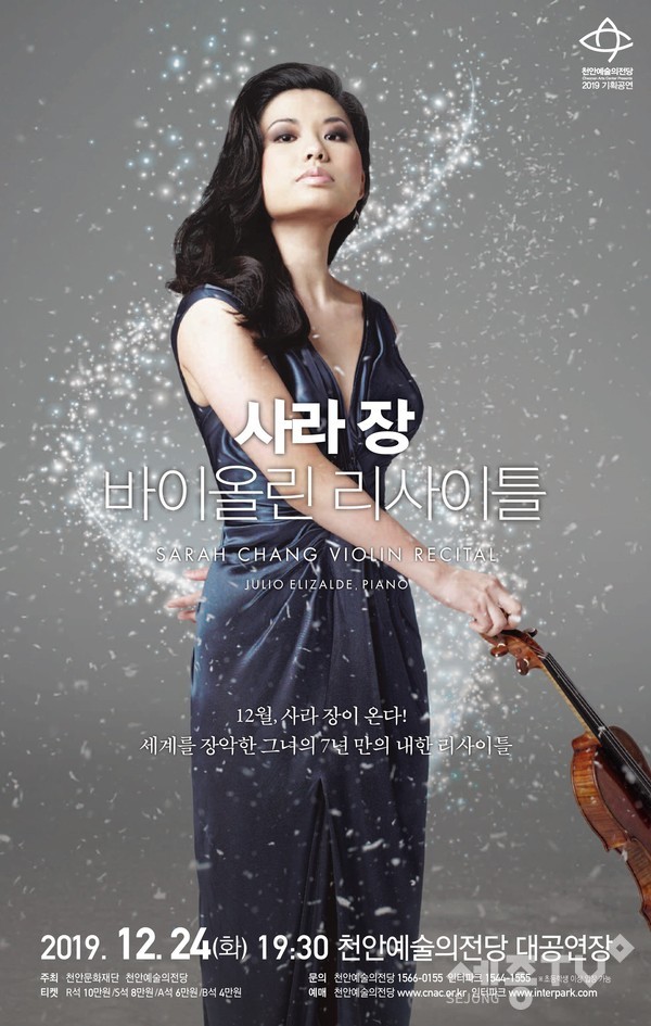 천안문화재단 천안예술의전당(관장 임전배)은 오는 12월 24일 오후 7시 30분 대공연장에서 세계 클래식계에서 가장 매혹적인 연주자라 불리는 바이올리니스트 사라 장의 리사이틀 공연을 개최한다고 밝혔다.