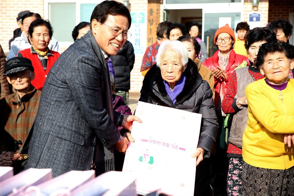 세종도시교통공사(사장 고칠진)는 연말을 맞이하여 27일 1사1촌 자매결연 마을인 장군면 용암1리를 방문해 마을 독거 어르신과 어려운 이웃에게 사랑의 물품을 전달했다.