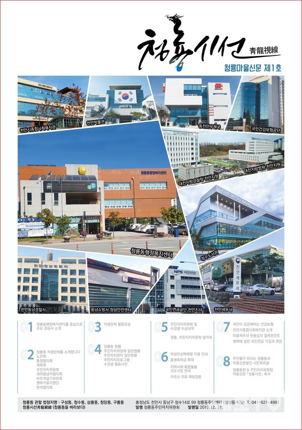 천안시 청룡동 주민자치위원회(위원장 윤봉화)가 청룡마을신문 제1호 ‘청룡시선’을 발간해 화제다.