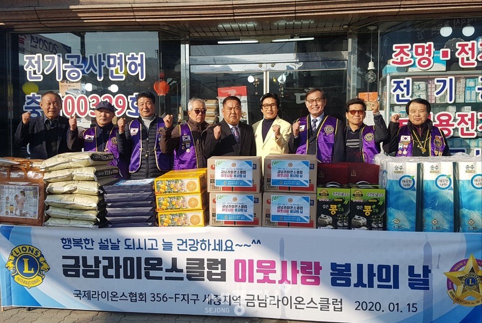 세종특별자치시 금남면 라이온스클럽(대표 이명호)가 설명절을 맞이해 15일 금남면의 어려운 이웃에게 200여만원의 명절용품(쌀, 고기, 과일 등)을 전달했다.