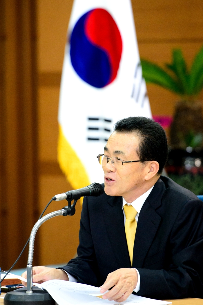 유한식 세종시장이 27일 오전 국무총리 세종공관에서 열린 ‘제7차 세종시지원위원회’(위원장 정홍원 국무총리, 이하 위원회)에서 예정지역 도시계획을 시민중심으로 변경할 것과 세종시청사 예산 적기 확보 등을 건의했다.