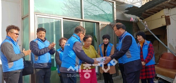 세종특별자치시 전동면 지역사회보장협의체가 20일 설 명절을 맞아 지역 내 독거노인 및 저소득 가구 등 어려운 이웃 80가구에 떡국떡을 전달했다.