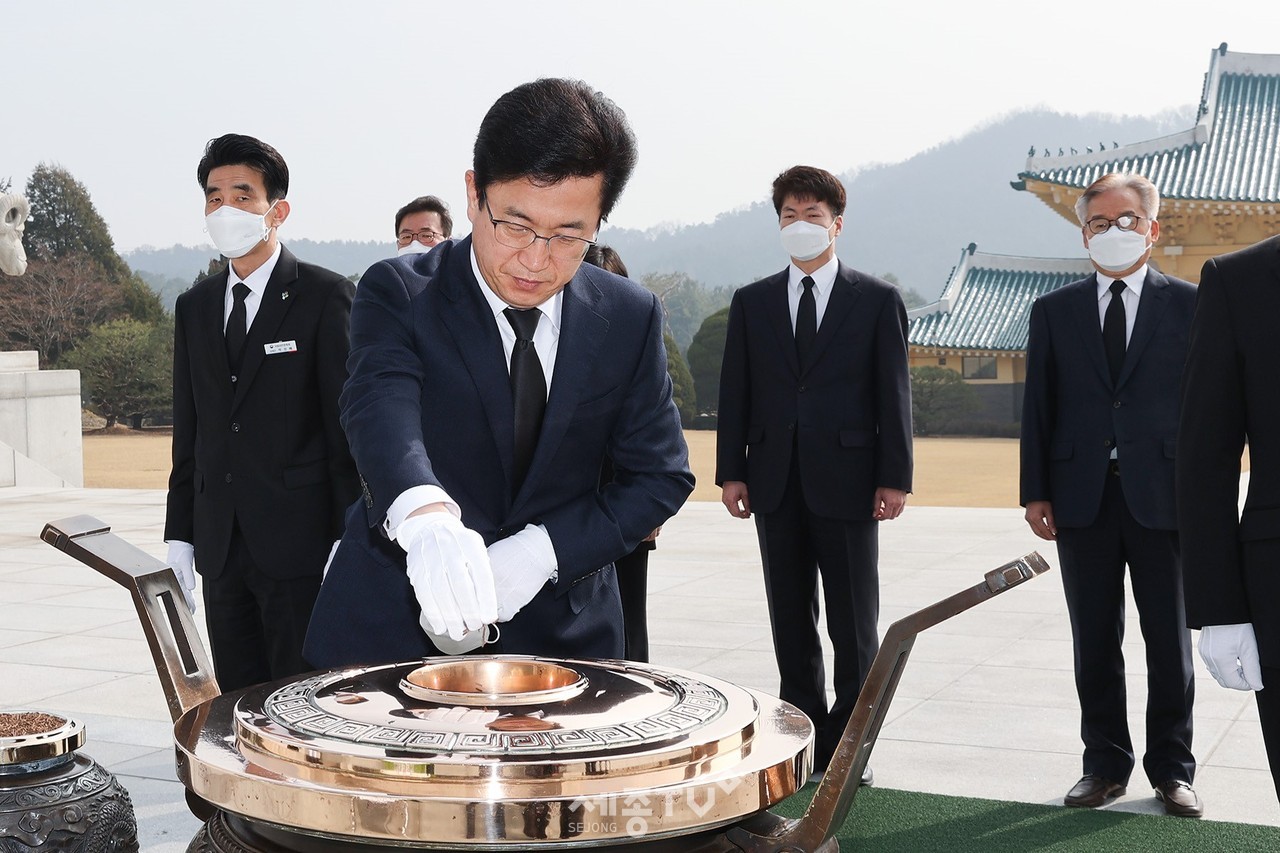 허태정 대전시장은 제101주년 3‧1절을 맞아 시 간부들과 국립대전현충원을 방문해 국가와 민족을 위해 희생한 순국선열과 호국영령들을 참배했다.