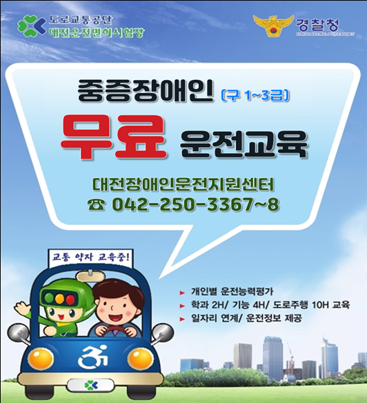 대전장애인운전지원센터에서는 교육생이 응시수수료만 지불하면 운전면허를 취득할 수 있도록 학과ㆍ기능ㆍ도로주행 교육을 무료로 실시하고 있으며, 지난 2016년 개소 이후 지금까지 총 437명의 장애인이 운전면허 취득에 성공하였다.