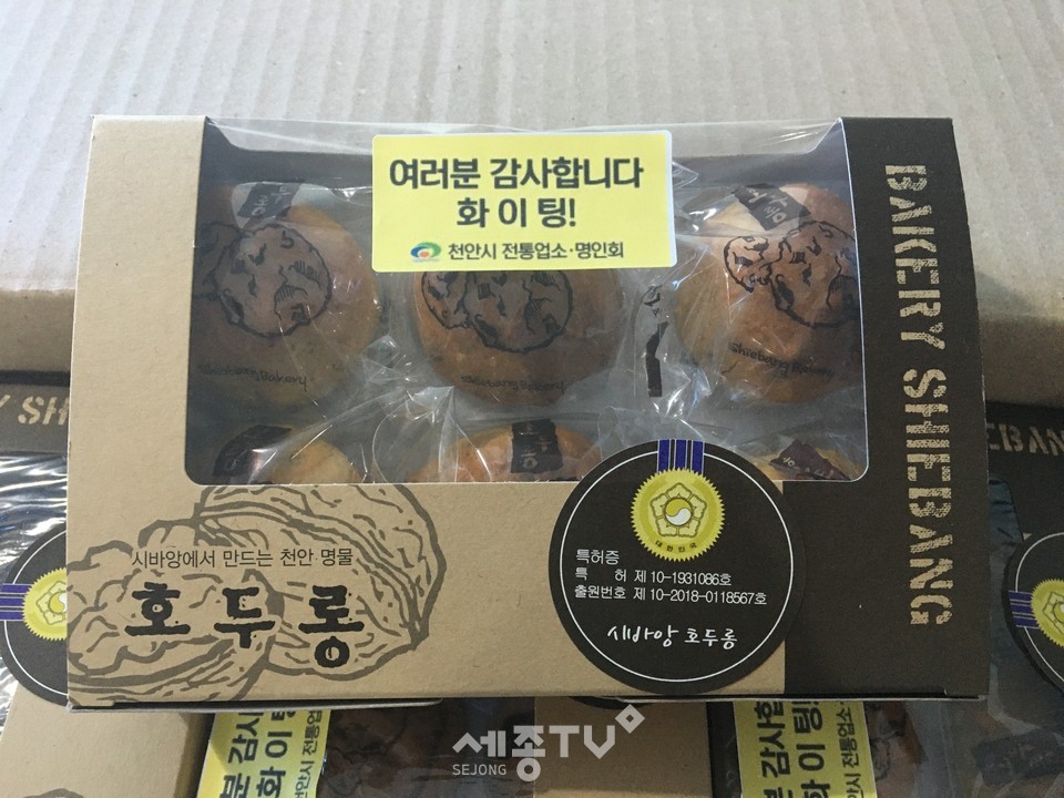 천안시 전통명인 유상모 씨(시바앙과자점 대표)가 지난 11일 코로나19 대응현장에서 업무에 힘쓰는 공무원들을 위해 호두롱 1,000개를 기부했다.