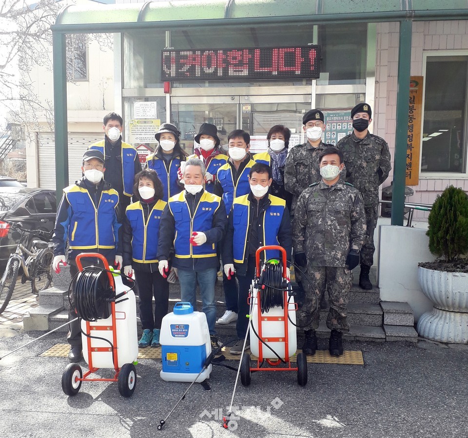 천안시 일봉동 주민자치위원회(위원장 신성철)와 예비군중대본부(동대장 최현국)가 지난 12일 코로나19 확산 방지를 위한 관내 자체 방역활동을 실시했다고 밝혔다.