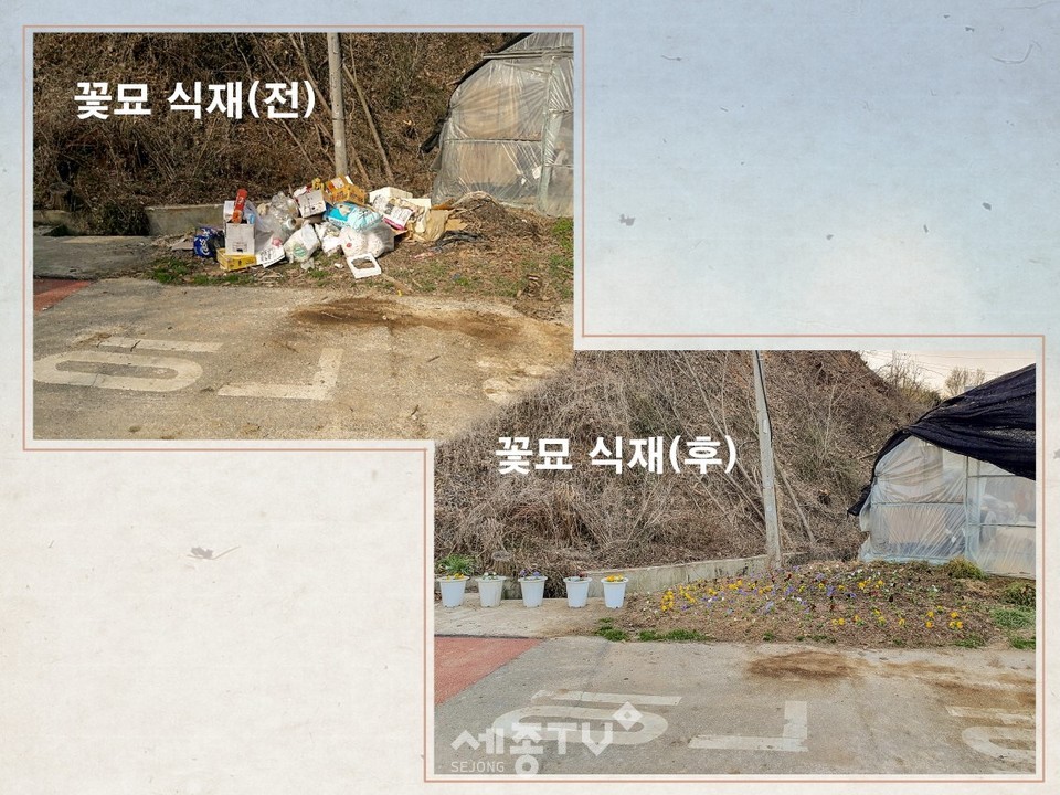 탄천면에 따르면, 불법쓰레기가 무분별하게 방치돼 미관을 해쳤던 안영2리 버스정류장 옆 공터 25㎡에 쓰레기를 수거하고 잡초를 제거한 뒤 팬지 420본을 식재했다고 밝혔다.