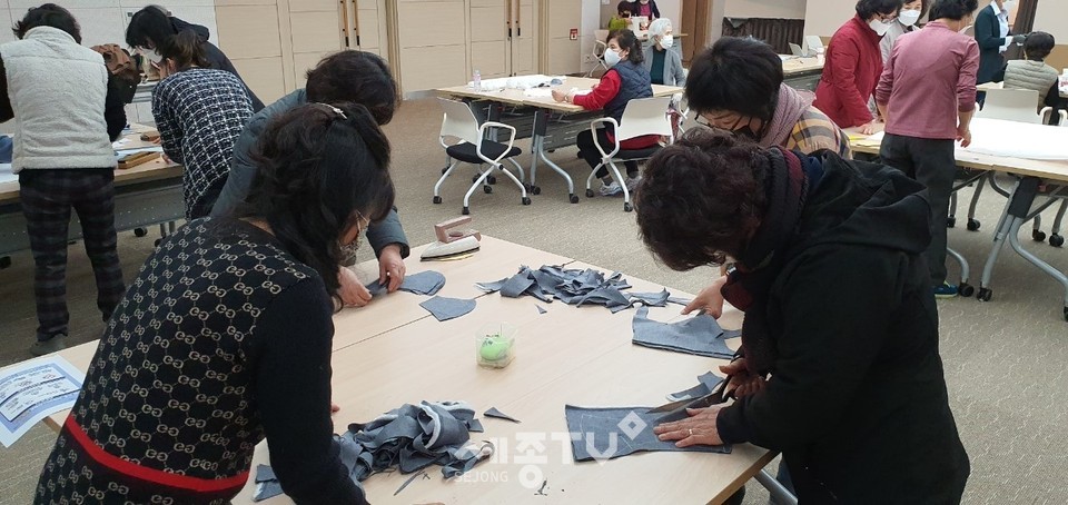 코로나-19 여파로 품귀현상을 빚는 마스크를 손수 제작해 취약계층에 나눠주는 봉사활동을 한다는 소식에 3개 단체 회원 30여 명이 재봉‧재단‧다림질 등 다양한 방법으로 참여했다.