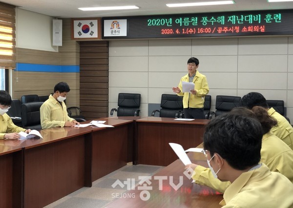 공주시(시장 김정섭)가 지난 1일 시청 소회의실에서 여름철 풍수해를 대비한 ‘2020 여름철 풍수해 재난대비훈련’을 실시했다.