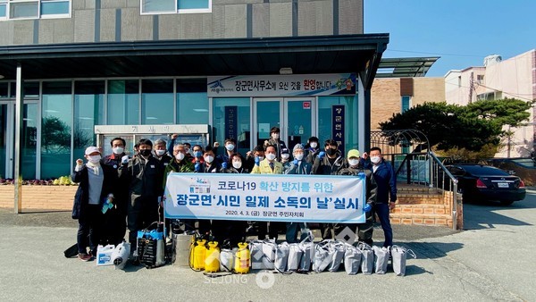 이날 소독활동을 위해 장군면에서는 마을 전역, 기관, 상점, 사업장 에 소독약을 사전에 배부하고 방역소독기 임대 서비스를 실시하는 등 주민이 자율적으로 소독 활동에 참여할 수 있도록 지원하였다.