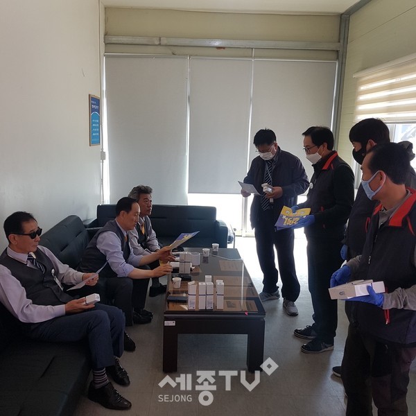 또한, 손소독제 300여개를 준비하여 다수인을 접하여 코로나 감염 등 위험에 노출될 수 있는 상점 등 서비스 업종 종사자, 택시‧배달 기사 등에게 배부했다.