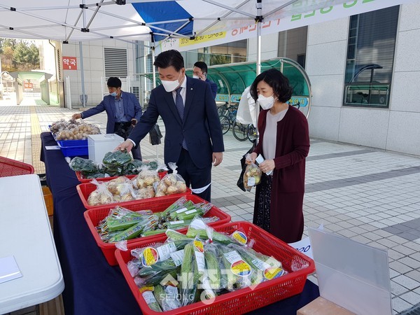 천안시가 코로나19 여파로 학교 개학이 연기되면서 학교 급식 식자재 공급중단 및 소비심리 위축으로 농산물 판매에 어려움을 겪고 있는 농가를 돕기 위해 농산물 팔아주기 운동을 적극 펼치고 있다.