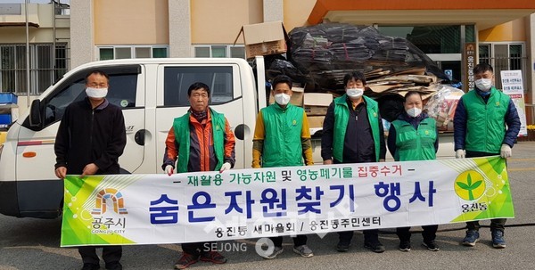 공주시 웅진동행정복지센터(동장 최상옥)와 웅진동 새마을협의회(회장 이명우, 부녀회장 김동순)은 지난 7일 환경의식을 고취하고 저탄소 녹색성장을 위한 자원재활용 실천운동인 ‘숨은 자원찾기’ 행사를 개최했다.