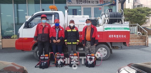 세종특별자치시 장군면(면장 김철호)이 9일 봄철 농산물 소각이 빈번해지고 있는 시기 빠른 초기 진화대응을 위해 산불진화장비 재정비를 실시했다.