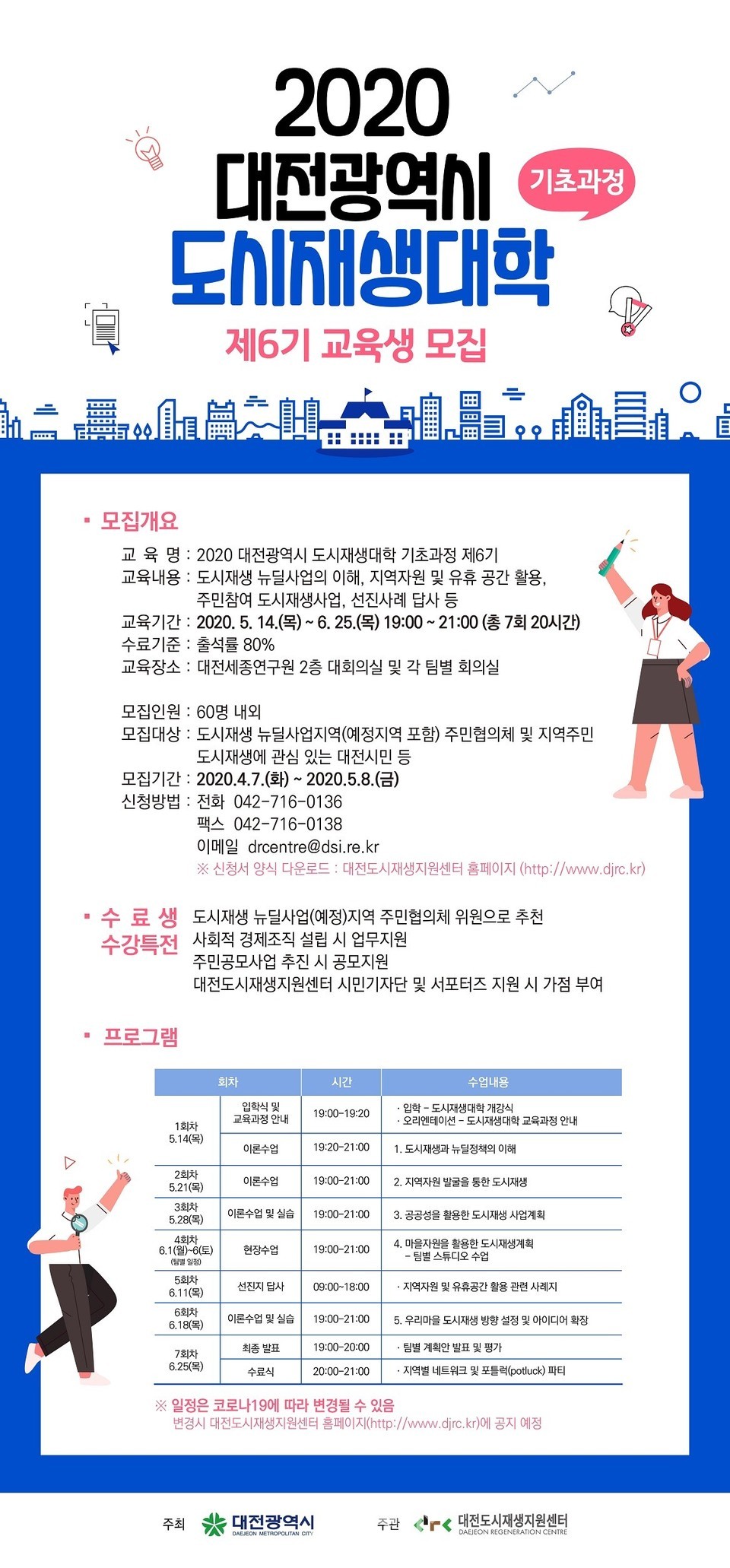 - 2020 대전시 도시재생대학 기초과정(제6기) 수강생 모집 -