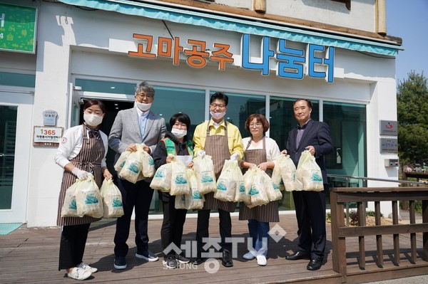 공주시(시장 김정섭)는 지난 9일 고마공주나눔터에서 ‘사랑의 빵’ 750개를 만들어 코로나19 방역을 위해 애쓰는 공주시자율방재단과 공주원로원에 전달했다.