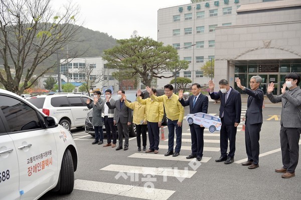 이번에 전달된 장애인 콜택시는 휠체어 탑승이 가능한 특수차량으로 교통약자의 대기시간 단축 등 불편을 크게 해소할 수 있게 됐다.