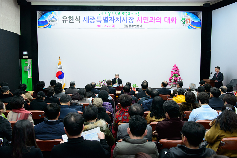 유한식 시장은 ‘시민과의 대화’를 통해 세종시 정상건설에 토대가 되는 ‘세종시 특별법 개정’에 적극 힘써준 시민에게 감사의 말씀을 전하고, ‘누구나 살고 싶은 행복도시’ 건설을 위해 세종시가 추진하는 올해 주요 시정 운영방향 등을 설명하고 시민의 적극적인 동참을 당부한다.