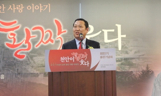 최민기 천안시의회 의장은 18일 세종웨딩홀에서 천안에 대한 사랑이야기를 담은 자서전 ‘천안이 활짝 웃다’ 출판기념회를 열어 자신의 삶과 정치 신념을 밝히고 본격적인 세몰이에 들어갔다.