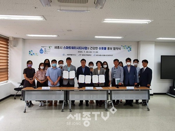세종특별자치시(시장 이춘희)가 22일 환경녹지국 회의실에서 대전·세종수돗물시민네트워크 및 한국수자원공사 충북지역협력단과 업무협약을 맺고 수돗물에 대한 인식개선과 음용문화 조성에 나서기로 했다.