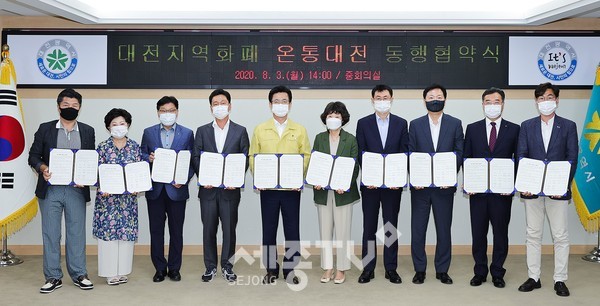 대전시와 지역 기업(기관)들이 코로나19로 침체된 지역 내 소상공인을 위한 온통대전(대전지역화폐) 활성화에 힘을 모으기로 했다.