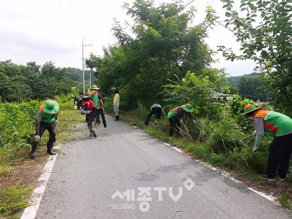세종특별자치시 연동면 지역자율방재단(단장 김문회)이 14일 회원 10여 명이 참여한 가운데 통행 위험구간 정비 작업을 실시했다.