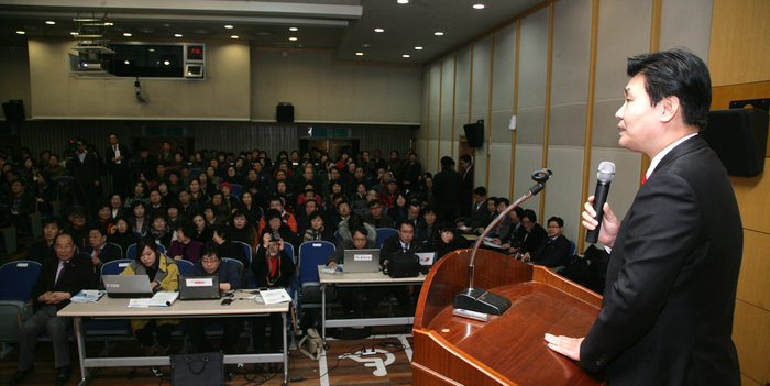 이날 정용기 구청장은 인사말을 통해 “시는 투명하지 못한 정책결정과 장밋빛 청사진으로 시민들에게 잘못된 정보를 제공하고 있다”며, 도시철도건설과 관련한 4가지원칙을 제시했다.