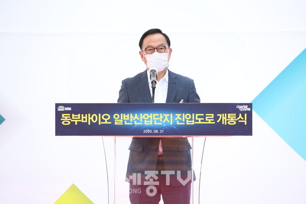 시는 31일 오전 동면 송연리 일원 도로공사 현장에서 박상돈 시장을 비롯해 시의장, 시의원 등 내빈이 참석한 가운데 ‘동부바이오 일반산업단지 진입도로’ 개통 행사를 개최했다.