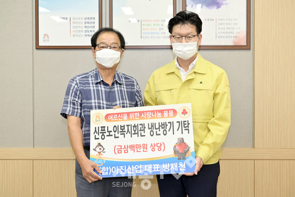 방 대표는 신풍노인복지회관의 경로식당 환경개선을 위해 사용해 달라며 300만원 상당의 냉‧난방기를 구입, 공주노인회 신풍면분회에 기탁했다.