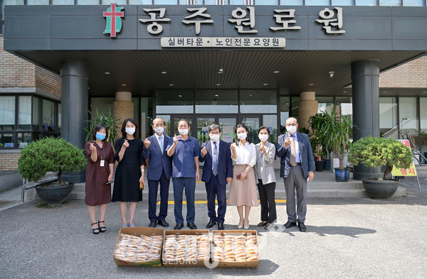 이 부시장은 이날 한성욱 공주기독교종합사회복지관장과 고마공주 나눔터 빵나눔 전문 봉사단 등 20여명과 빵을 만든 뒤 공주원로원을 방문, 어르신들에게 전달하고 위로의 시간을 가졌다.