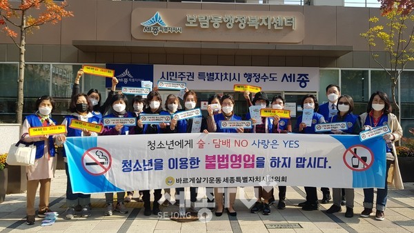 세종특별자치시 바르게살기운동 보람동위원회(위원장 류도경)가 27일 관내 유해업소 밀집지역을 중심으로 청소년 유해환경 근절 캠페인을 벌였다.
