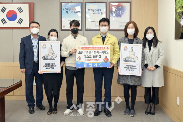 이 대표는 이날 김정섭 시장을 만나 5천만 원 상당의 마스크 10만장을 코로나19로 어려움을 겪고 있는 사회복지시설과 저소득 취약계층에게 전달해 달라며 기탁했다.