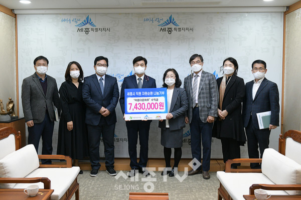 이번 기부금은 앞서 시가 제12회 자원순환의날을 맞이해 접수받은 시 직원들의 기증물품을 지난달 23일 아름다운가게 세종고운점과 연계· 판매해 얻은 수익금이다.