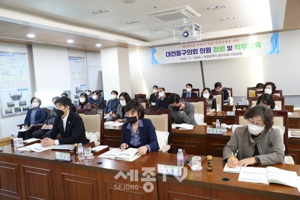 대전광역시 동구의회(의장 박민자)는 10일, 오전 10시부터 18시까지 의원간담회장에서 동구의회 의원대상으로 『제8대 후반기 의원 역량강화를 위한 직무교육』을 실시했다고 밝혔다.