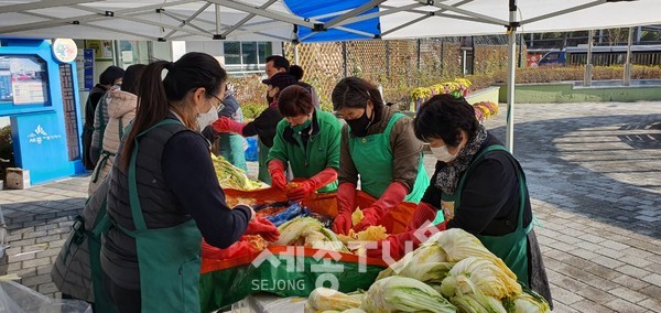 세종특별자치시 도담동 새마을부녀회가 지난 21일 도담동 일대의 독거어르신 및 취약계층을 위한 김장 나눔 봉사활동을 실시했다.