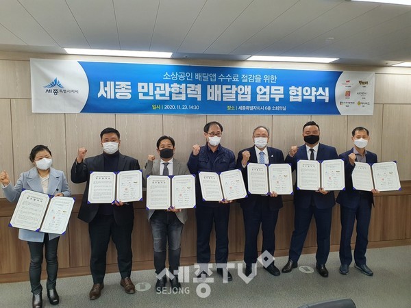 세종특별자치시(시장 이춘희)가 23일 시청 소회의실에서 세종 민관협력 배달앱 운영사와 업무협약을 체결하고 12월 서비스 순차 개시를 목표로 막바지 준비 작업에 나섰다.