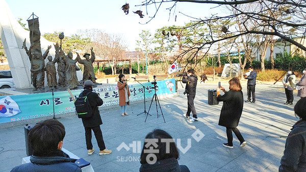 2020년 마지막 유관순애국시단의 시 낭송과 공연은 천안지역 ‘코로나 19’ 사회적 거리두기 2단계 격상에 따라 대폭 축소하여 회원 및 관계자 25여 명이 참석한 가운데 진행됐다.