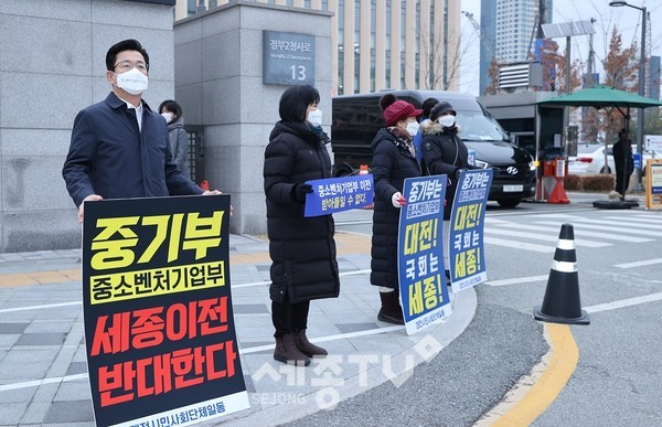 허태정 대전시장은 10일 오전 8시 20분경에 정부세종2청사(행정안전부) 본관 앞에서 중소벤처기업부 이전 반대로 천막 시위 농성중인 시민단체와 더불어민주당대전시당을 위문하였다.
