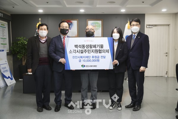 또 국민건강보험천안지사(지사장 정형태) 100만원, 농협공동사업법인(대표 김충구) 100만원, 해링턴어린이집과 불당으뜸어린이집 저금통 후원, 천안새마을금고(이사장 이재우) 임직원 성금모금 549만1250원을 후원했다.