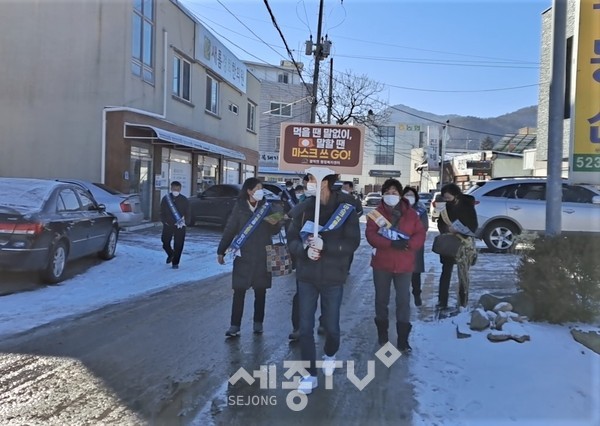 천안시 광덕면 새마을남녀지도자(협의회장 이상문, 부녀회장 정강남)가 19일 코로나19 선제적 대응 차원으로 코로나19 예방수칙 홍보캠페인을 실시했다.