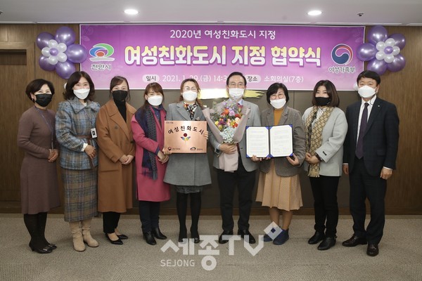 천안시는 29일 시청 소회의실에서 온라인 비대면 영상회의를 통해 여성가족부와 ‘여성친화도시’ 조성을 위한 협약을 체결했다고 밝혔다.