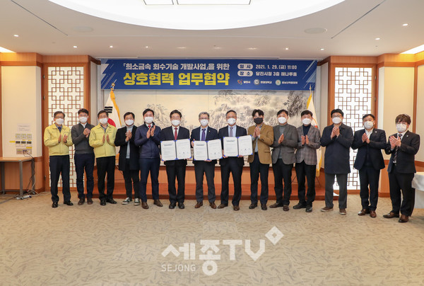 당진시는 지난 29일 당진시청 해나루홀에서 산업통상자원부가 지원하는 에너지 기술 개발 사업 과제 중 희소금속 회수 기술 개발 사업을 위해 한양대학교·충남산학융합원과 상호협력 업무협약(MOU)을 체결했다고 밝혔다.