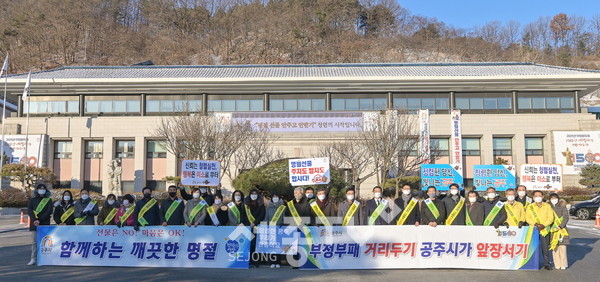 설 명절을 앞두고 흐트러지기 쉬운 공직기강을 바로 잡고 불필요한 관행과 금풍·향응 수수 근절을 위해 추진된 이날 캠페인에는 김정섭 시장과 간부공무원, 이종운 시의회의장과 시의원 등이 참여했다.