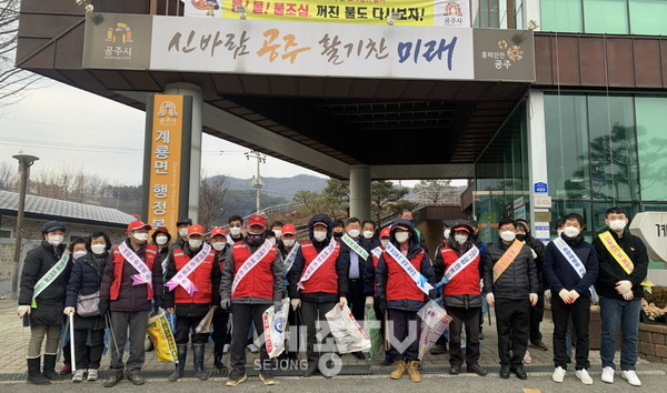 공주시 계룡면(면장 유필종)은 설 명절 앞둔 10일 계룡산 관문인 면 소재지 주요 도로변과 하천 일원에서 대청소를 실시했다.